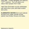 ELIMINATES ODORS from such places as Dog Runs, Grass, Gravel & Concrete, Patios, and Fences.